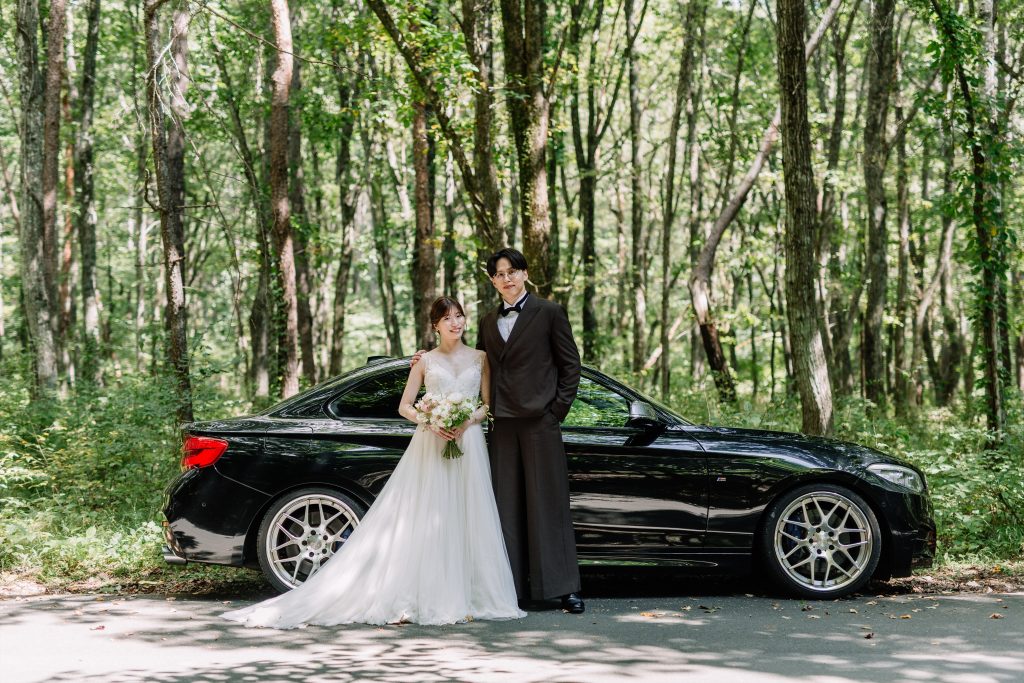 白のリボンアレンジはウェディングの特別感があり、新緑のシーンにぴったりでした!