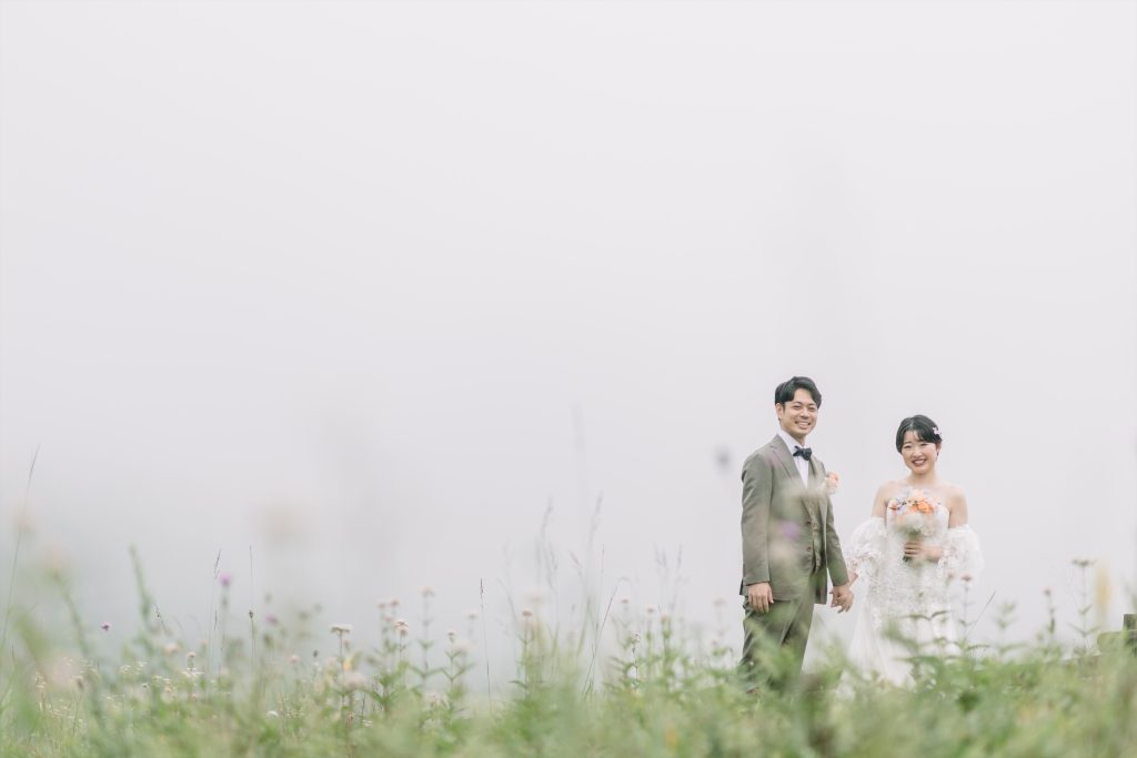 高原での洋装撮影では霧が出現しましたね^^