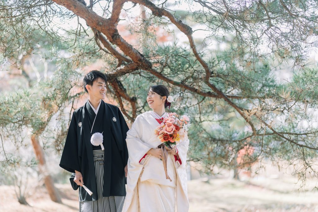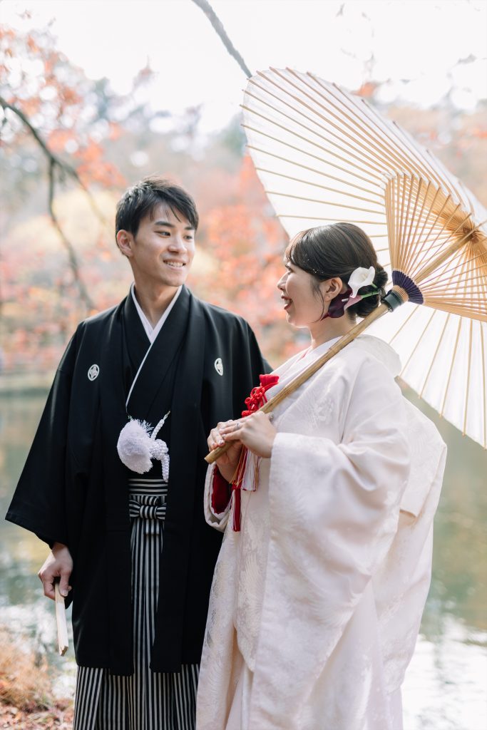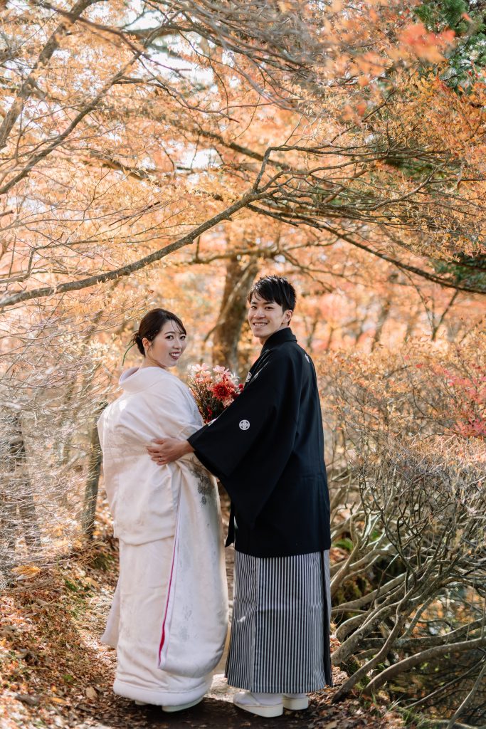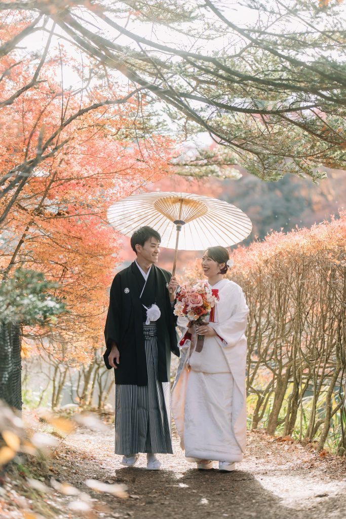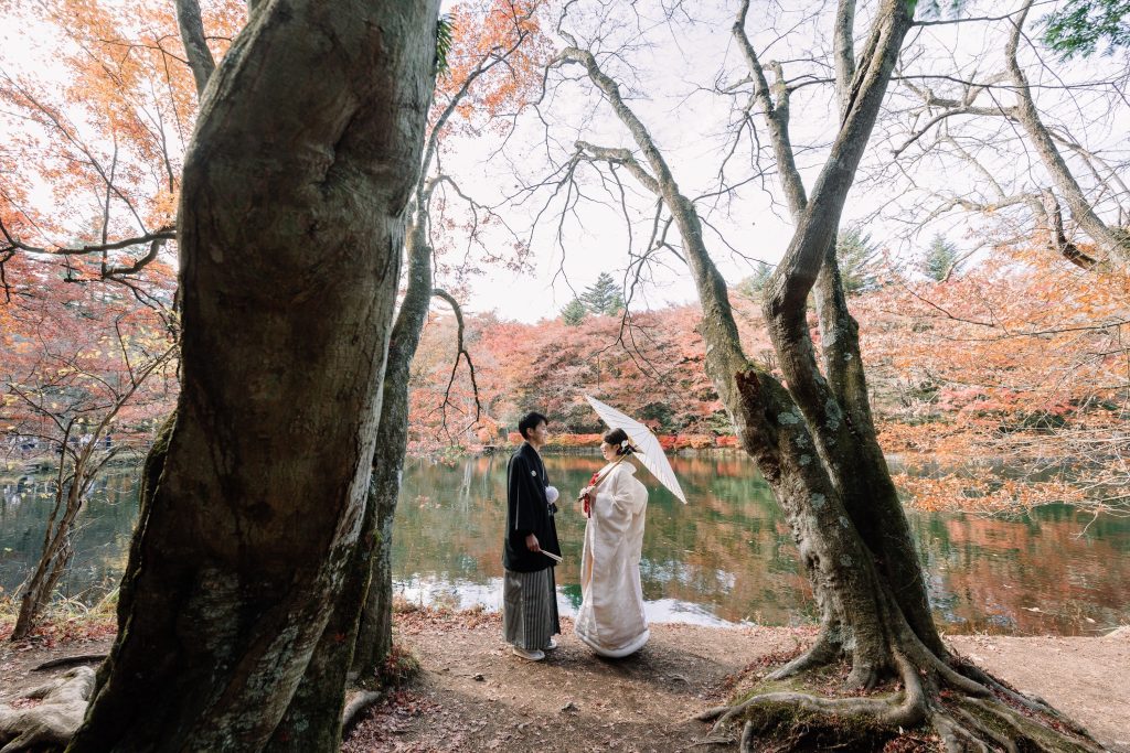 前半の和装ロケーションはグリーンと紅葉の鮮やかな秋ロケーションです