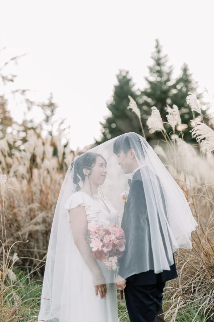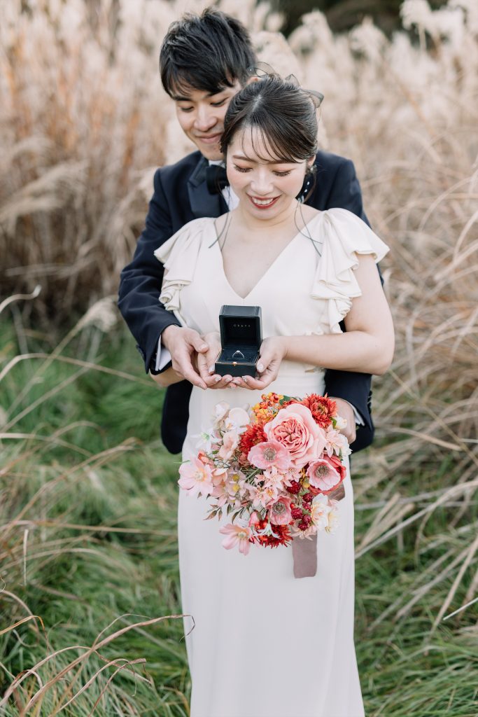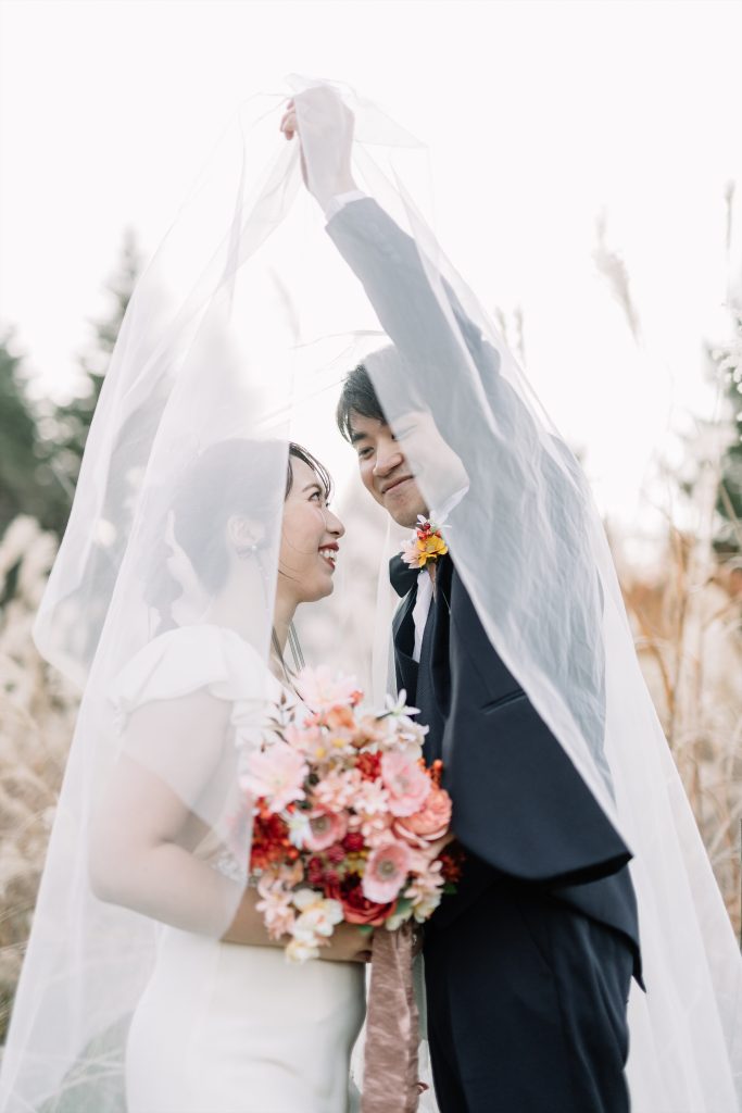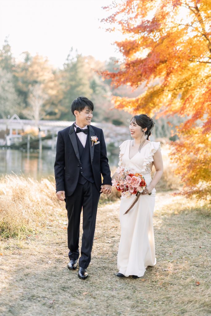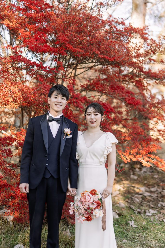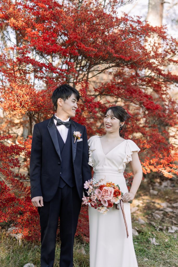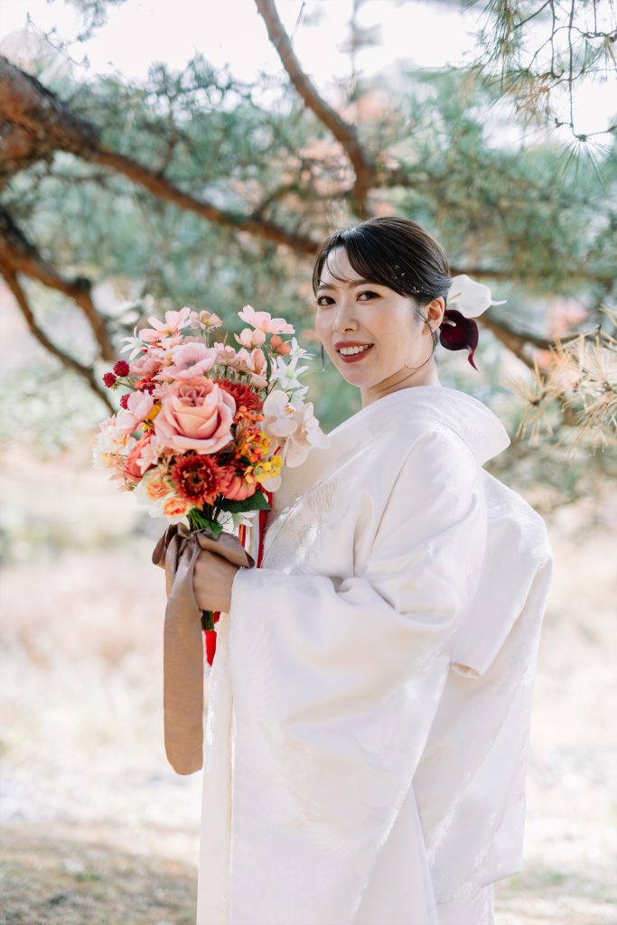 赤ふきの白無垢に合わせた鮮やかなブーケ^^紅葉の軽井沢にとってもお似合いでした!
