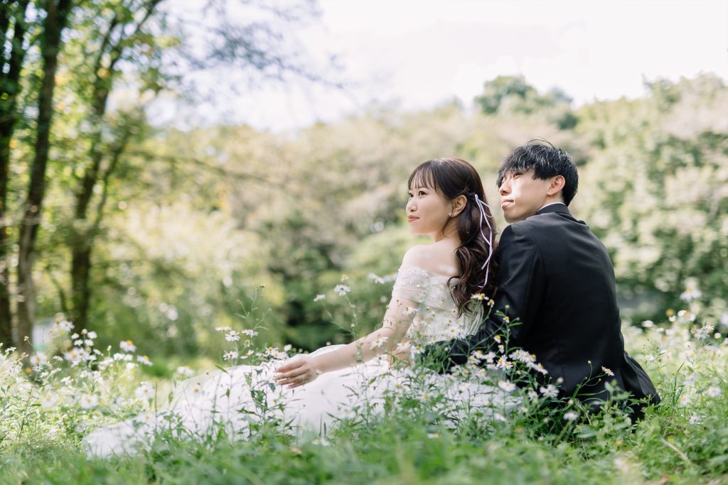 お花に囲まれて、蝶々もとんでいて、なんだかロマンティックな撮影スタートでした!