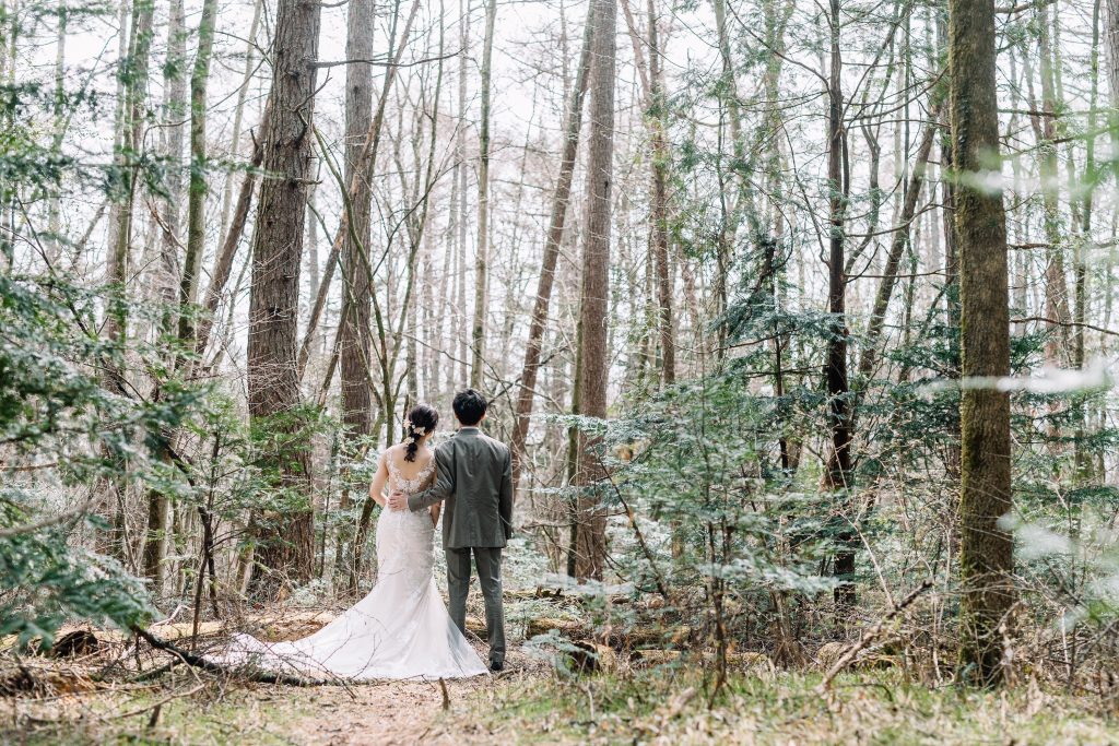 軽井沢のフォトウェディングにお越しいただきました本日のステキなおふたり。 紅葉は見頃を迎え、緑と紅葉のミックスが楽しめる季節です。 軽井沢のフォトウェディング、緑の森がご希望のお客様が多くいらっしゃいます。11月上旬は様々なシーンが楽しめる季節でもあり、撮影にはオススメの季節です。 アンティーク調のステキなドレスをお持ち込みいただきました! くるみボタンだったりお袖のデザインだったり、こだわりのウェディングドレスはディティールも可愛く写真に残したいですよね!
